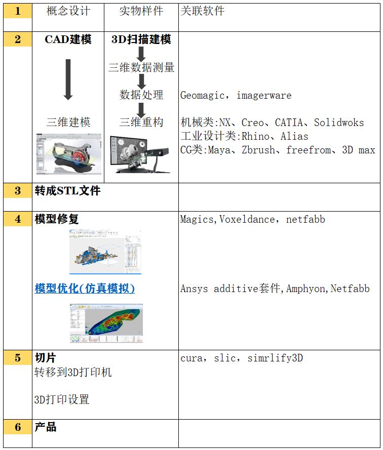 从上面的3D打印处理过程看,三维建模(三维重构)、模型修复、模型优化(模拟仿真)至关重要,它决定了打印成品的细节、样式及品质保证。