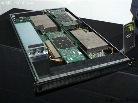 Tesla GPU运算服务器S870则是一台全新的标准1U服务器,内部安装四块C870通用计算显卡,6GB显存,运算能力超过2Tflops,功率最高可达800W,售价约12000美元。