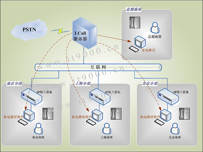 - 2、IP呼叫中心采用总部统一电话接入的模式,只需公布总部的电话号码。总部接入线路支持400电话、普通电话线、模拟中继、数字中继等方式。